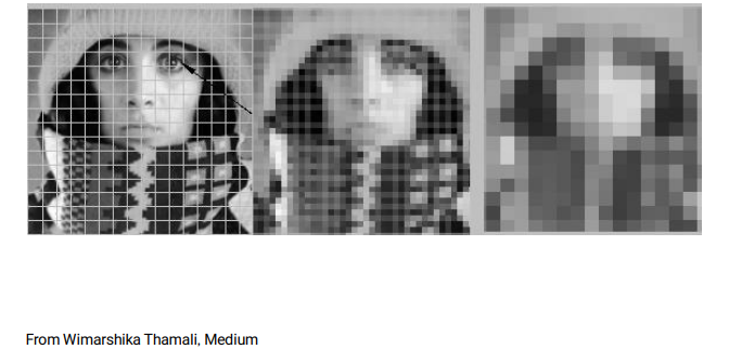 - 카메라 센서에서 이미지가 연속적인 빛 신호(아날로그)로 입력되면, 일정 간격의 픽셀(grid)로 나누어 샘플링하여 디지털 이미지로 변환된다.